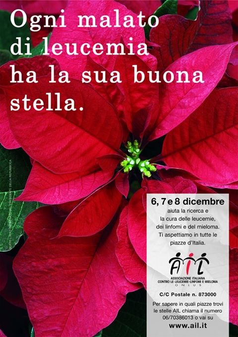 Torna da oggi fino a domenica l’iniziativa ‘Stelle di Natale’ dell’AIL. L’A.I.L. è impegnata nella lotta contro le malattie del sangue; la Sezione di Foggia opera nel nostro territorio da 19 anni e durante questo periodo ha, tra l’altro, donato apparecchiature scientifiche alla Struttura Complessa di Ematologia di Foggia, ha contribuito a migliorare le condizioni di degenza. ha organizzato l’assistenza domiciliare. Nell’anno corrente ha finanziato due progetti di ricerca al GIMEMA.